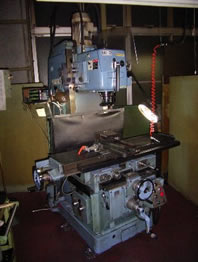 ボール盤と同じように主軸に取り付けられた刃物を回転させて削っていく工作機械です。 ボール盤と同じ様に穴開けもできますが、ハンドルの操作によりテーブルを動かせるので、 主軸にエンドミルを取り付けることで溝加工や段加工が可能です。
